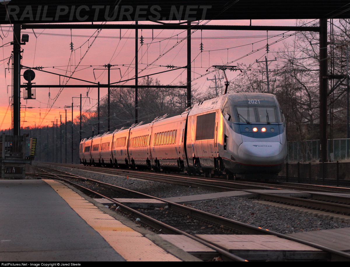 RailPictures.Net Photo: AMTK 2021 Amtrak Bombardier/Alstom Acela Express Trainset at Newark, Delaware by Jared Steele