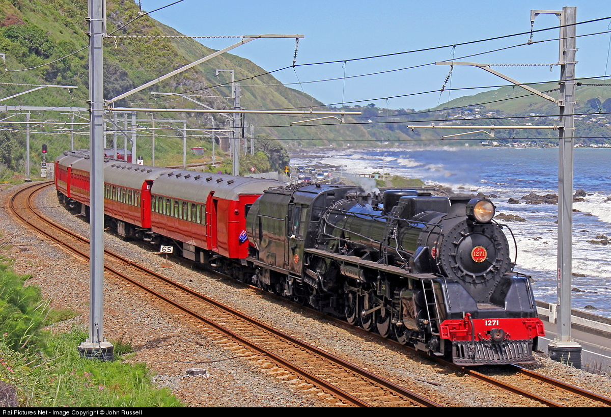 This heritage special train near Paekakariki is marking exactly 150 years of the opening of first public railway in New Zealand. Ja 1271 was built at Hillside, Dunedin c. 1955-56, among the very last few locomotives built in New Zealand. The train has just passed through the last tunnel on the 2% grade descent from Pukerua Bay.