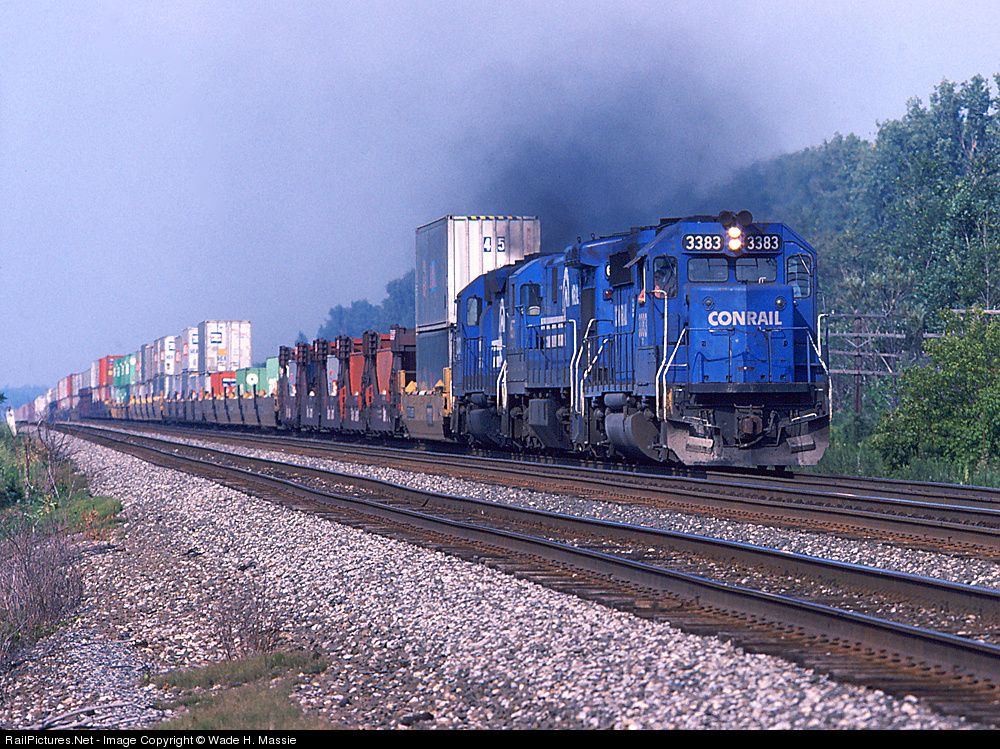 3383 thunders down the Water Level Route with a hot stack train. I have this slide labeled as "Mt. Vernon, NY", but apparently that is incorrect. Can anyone identify this location? It's somewhere on the Chicago Line between Syracuse and Erie, possibly Wayneport or Fairport.