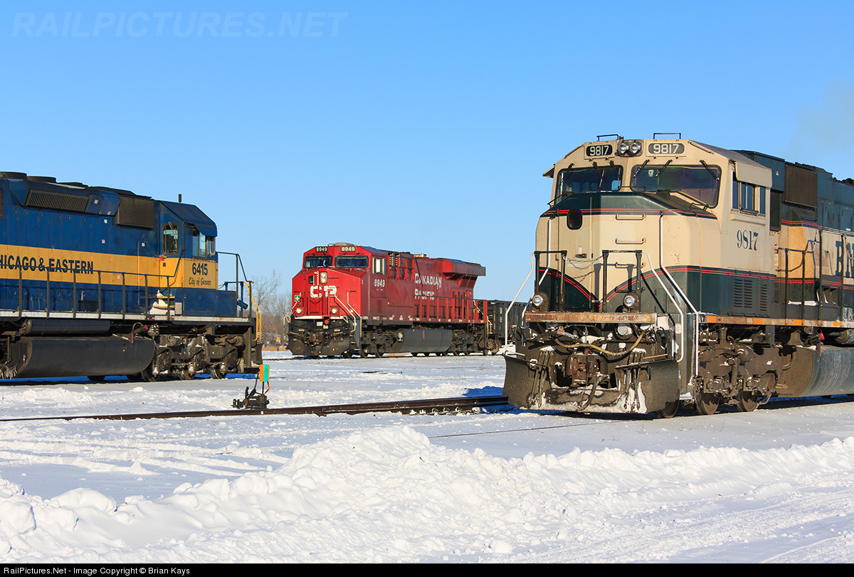 | Variety: Canadian Pacific train 490 from Winnipeg pulls into the Thief River Falls yard amongst a variety of foreign and relatively new power to the CP Rail system. Amongst the group is and BNSF "executive" SD70MAC, an ICE SD40-2, and out of the frame is SOO "bandit" 4512, and a BNSF ES44DC. |