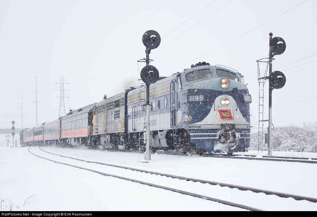 The NS Santa Train operated out of Decatur, IL used equipment from the Monticello Railroad Museum with WAB 1189 leading on former Wabash territory.