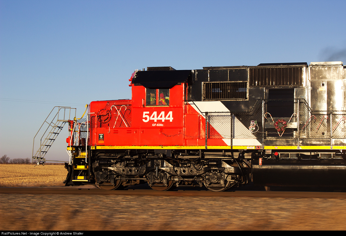 CN 5444 leads the Illinois Central Santa train southbound on the Gilman Sub on a brisk morning at 45 miles an hour in early December. The cab is packed full of railroad employees and their kids, the entire freshly painted engine is decked out in Christmas lights and portable steps are chained to the front pilot to allow easy access for every single child that visits Santa to blow the horn and see the inside of a locomotive cab, truly a class act, way to go CN!