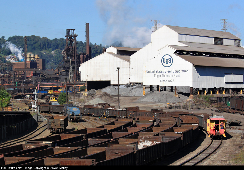 | Daylight 76 crew, doing Mill work before hauling slabs to Irvin shoves a cut of outbound slabs into the Valley yard. This would later go to NS's Kenny Yard. |