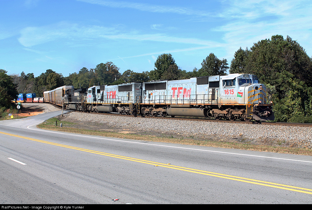 | Ratty looking TFM 70MACs lead a Dallas,TX - Atlanta,GA train through the reverse S curve just west of Douglasville. |