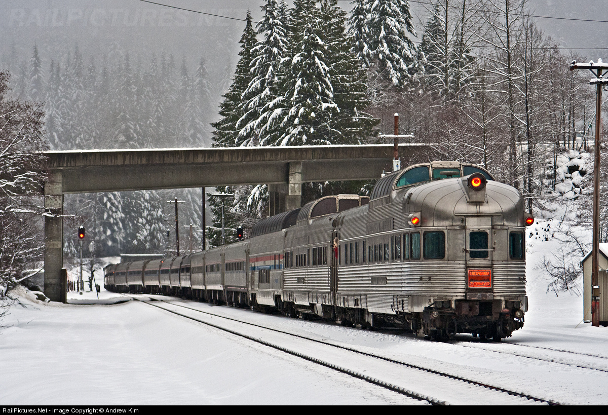 Although the Silver Solarium observation dome and Silver Lariat dome car are far from the beaten path of the Califormia Zephyr route, both cars looked really nice with the Amtrak super dome car as the Leavenworth Snow Train proceed through East Scenic to enter into the 7.8 mile long Cascade Tunnel.