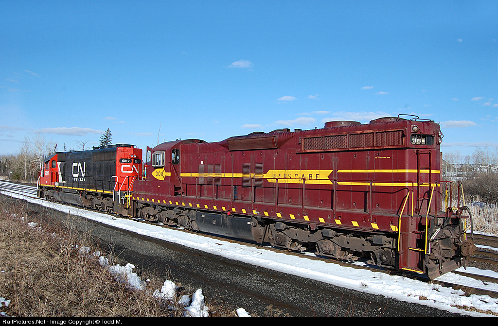 | Back when the Missabe still interchanged with CN at the small yard near Shelton Jct. a person could see the changes happening before their very eyes. Here is the last days the DM&IR 308 (rebuilt from SD18 DMIR #177 at Proctor) would spend on home rails and the incoming new power that still runs the rails of northern Minnesota today. |