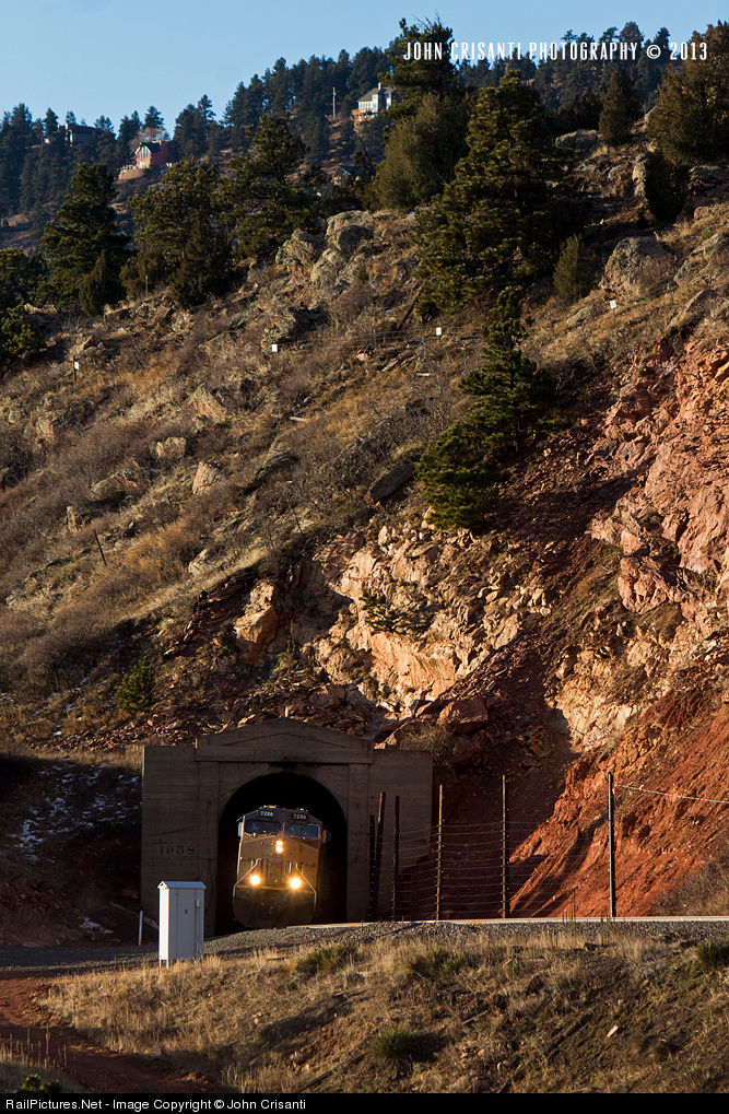 After climbing the 2% grade through Coal Creek Canyon, the MNYRO 27 (North Yard, CO to Roper Yard, UT Manifest) exits Tunnel #1 just south of Plainview. The train still has 29 more tunnels before reaching the East Portal.
