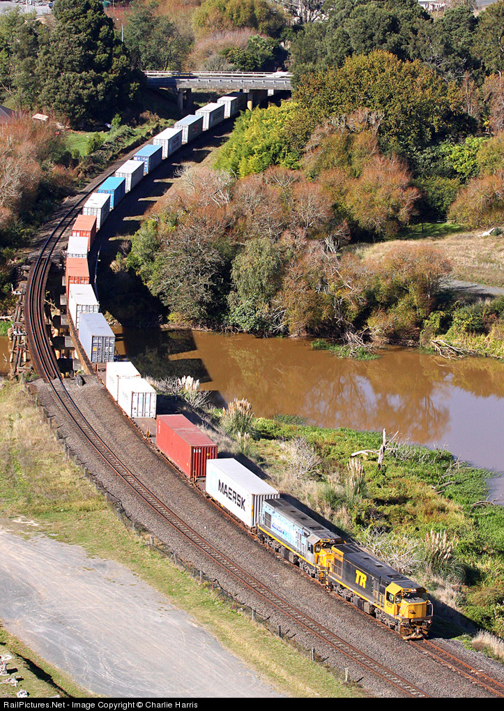Trains on 3' 6" (1.067m) track from Whangarei to Bluff with virtually heritage rebuilt EMD and GE locomotives still the mainstay power. The network was privatized in 1990's and operated by Toll until 2008 when state owned KiwiRail was established.