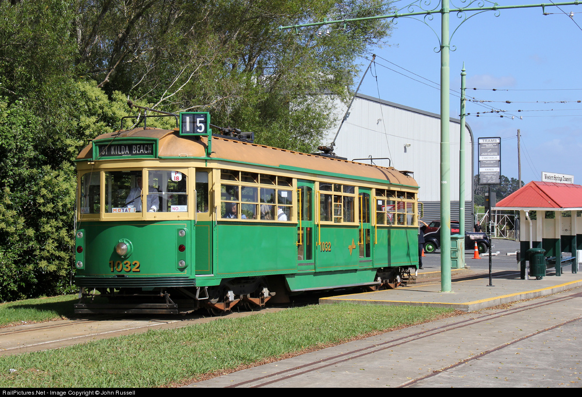 Ex-Melbourne street car 1032 departs the terminus at Meola Road. This stop serves the adjacent Western Springs Railway which has several tank steam locomotives. This heritage line opened in stages from 1980 is not an original route of the extensive tramway system which extended from coast to coast until 1956.