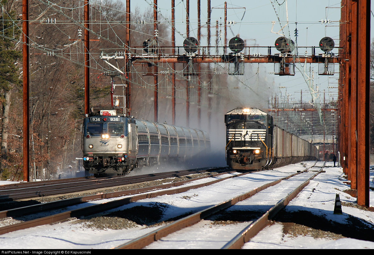 Today's NS 590 races an Amtrak regional toward Baltimore. My money's on the meatball.