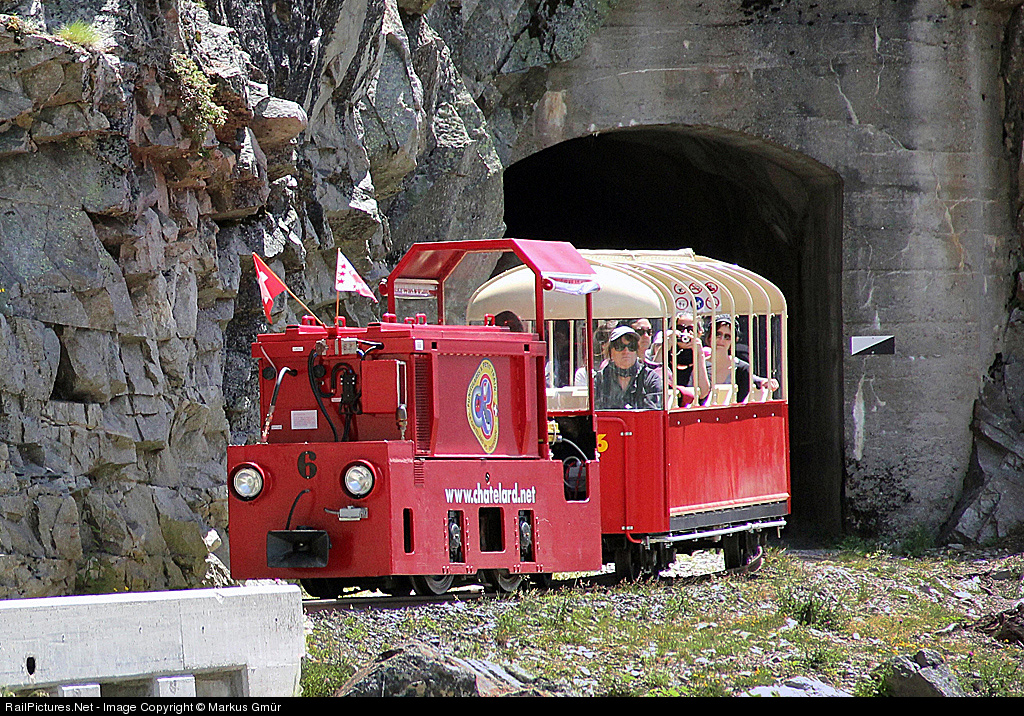 | 'The Little Panoramic Train' runs between Les Montuires and Lac d'Emosson, gauge 600mm. This touristic train is a part from the route from Le Chatelard - Cable Car - Les Montures - Little Panoramic Train - Lac d'Emosson. This is a very imposing route along the rocks |