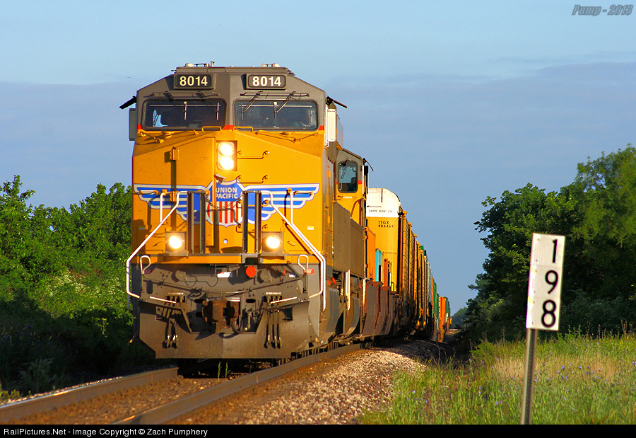 The UP River Sub. is out because, well, the Missouri River that the line is named after is out of its banks. So when flooding happens, the UP Sedalia Sub. is again a bi-directional railroad. First train this morning is UP Train ZSEMN 31, coming out of a hogback with 189 miles to St. Louis.