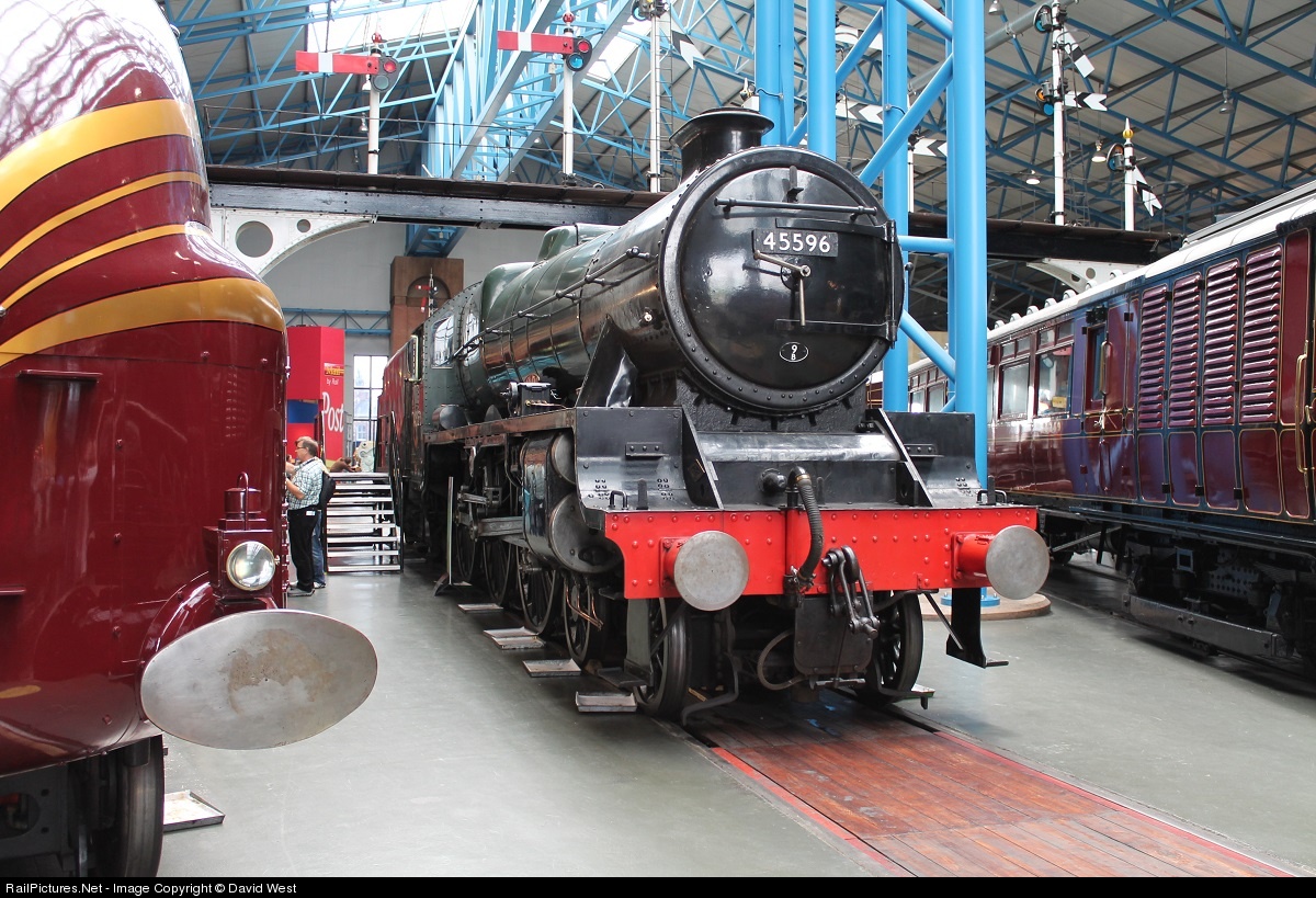 | The North British Locomotive Company in Glasgow built EX LMS Jubilee Class 4-6-0 Bahamas 5596 in 1935. She was named Bahamas in 1936. It is seen here in The National Railway Museum, York. It was renumbered in 1948 when the Big Four as they were known, were Nationalized and became British Railways but divided in four regions. Bahamas is currently preserved in BR Green and numbered 45596. Photographed on 1st September 2012. |
