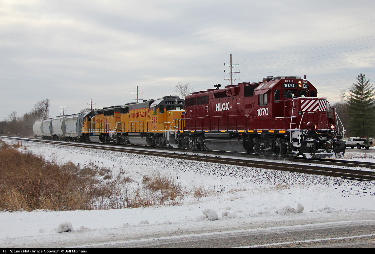 | Not as cool as NS 1070, but HLCX 1070 still looks pretty good with it's new maroon & black coat of paint on UP train LSE59 aka (The Pacific Turn) local heading east at Pacific Missouri on Union Pacific's Jeff City Sub. |