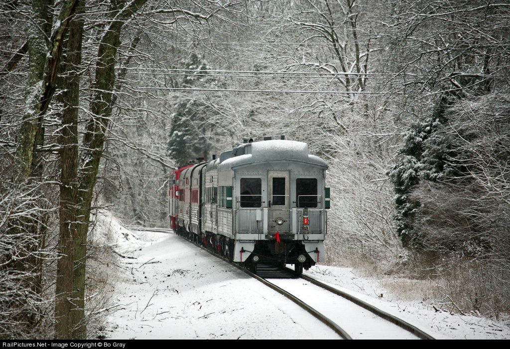 | Traipsing through a winter wonderland, Paducah and Louisville Railway's Bluegrass State I brings up the markers behind RJ Corman's dinner trainset and classic F-unit locomotives. The consist is returning to home base after some VIP special moves in the Bluegrass region of Kentucky. |