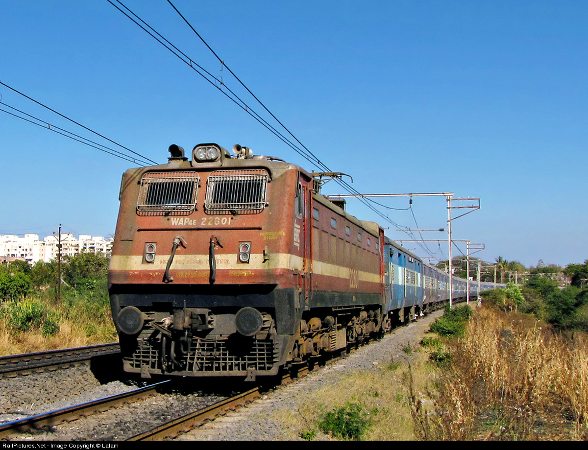 | WAP-4 type locomotive reached Pune for the first time. This is the first AC passenger type locomotive to reach here after conversion of traction from 1500V D.C. to 25kV A.C. The same loco can be seen herewith on its return journey. |