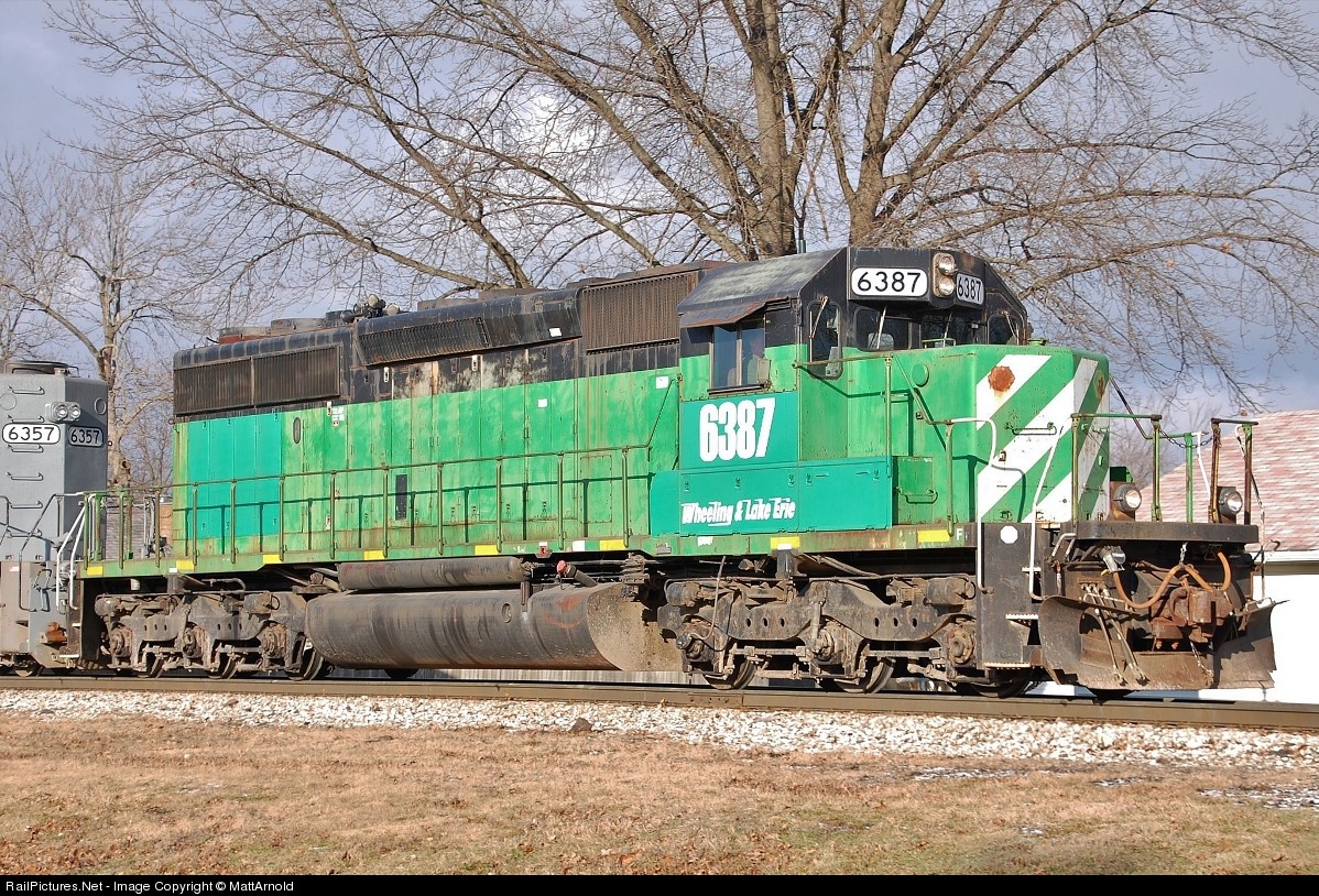 W&LE recently acquired four new SD40-2's; 3 coming from LTEX and 1 from the MMA Railway. Two of the engines are still in BN green paint schemes. Of the four SD40-2's, only one has been put into service so far. W&LE #6387 got a quick W&LE patch on the cab and long hood. Kudos to the W&LE for using green, not black, for the paint patches. Here is the 6387 leading northbound train 261 in Navarre, Ohio, on 12/26/13.