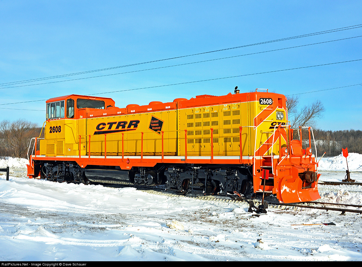 | Cloquet Terminal has placed their former MODOC Genset into service with lettering inspired by the Milwaukee Road and interchange partner BNSF. They also painted the under frame black and added snow plows. |