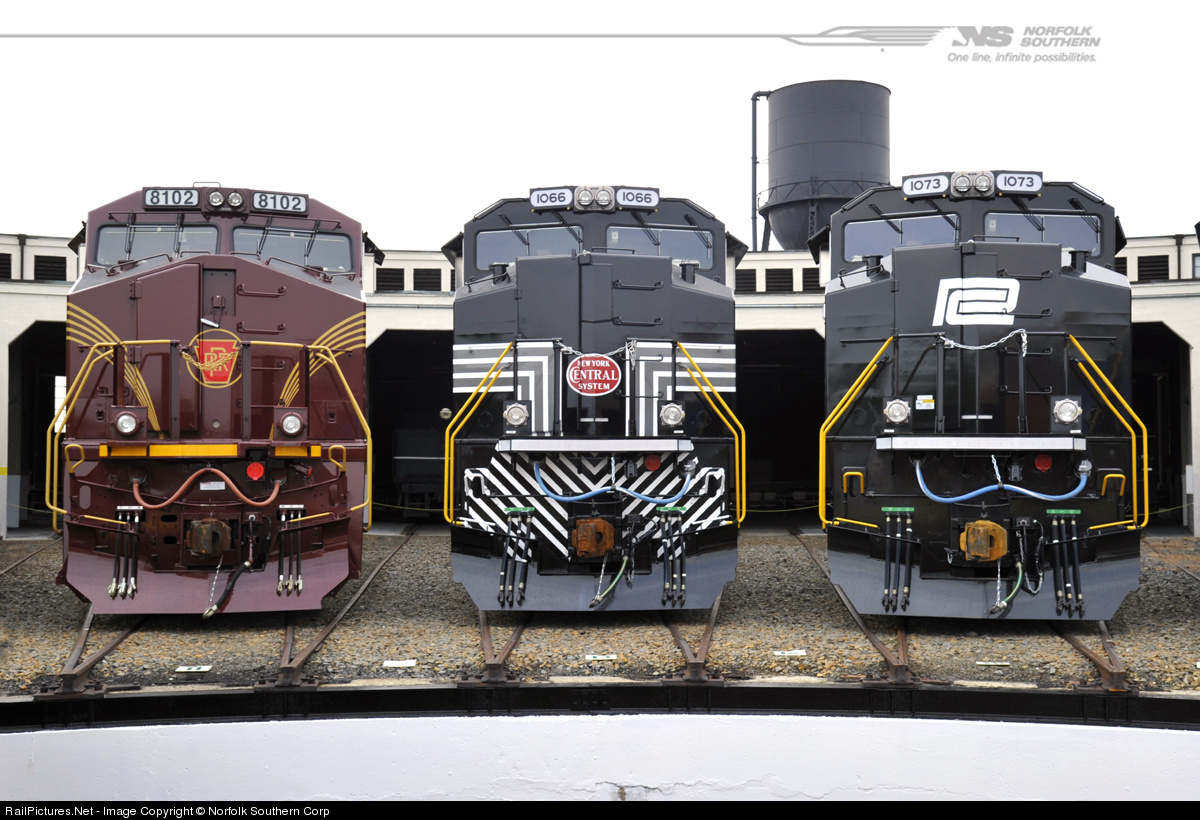 46 years ago today, the Penn Central Railroad was formed with the merger of the Pennsylvania Railroad and the New York Central Railroad- February 1st, 1968. Photo taken during the "Heritage Fest" at Spencer, NC, July, 2012, with modern-day locomotives representing their employer's heritage. Photo by Casey Thomason. For more information about Norfolk Southern, visit www.nscorp.com