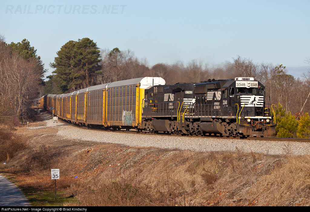 Not something you see anymore, an SD40 leads solid multi-levels of Mercedes-Benz autos to Brunswick, GA for export. With the huge growth in automotive assembly plants in the South, Brunswick has become the 3rd busiest Roll On-Roll Off (RoRo) port in the US.
