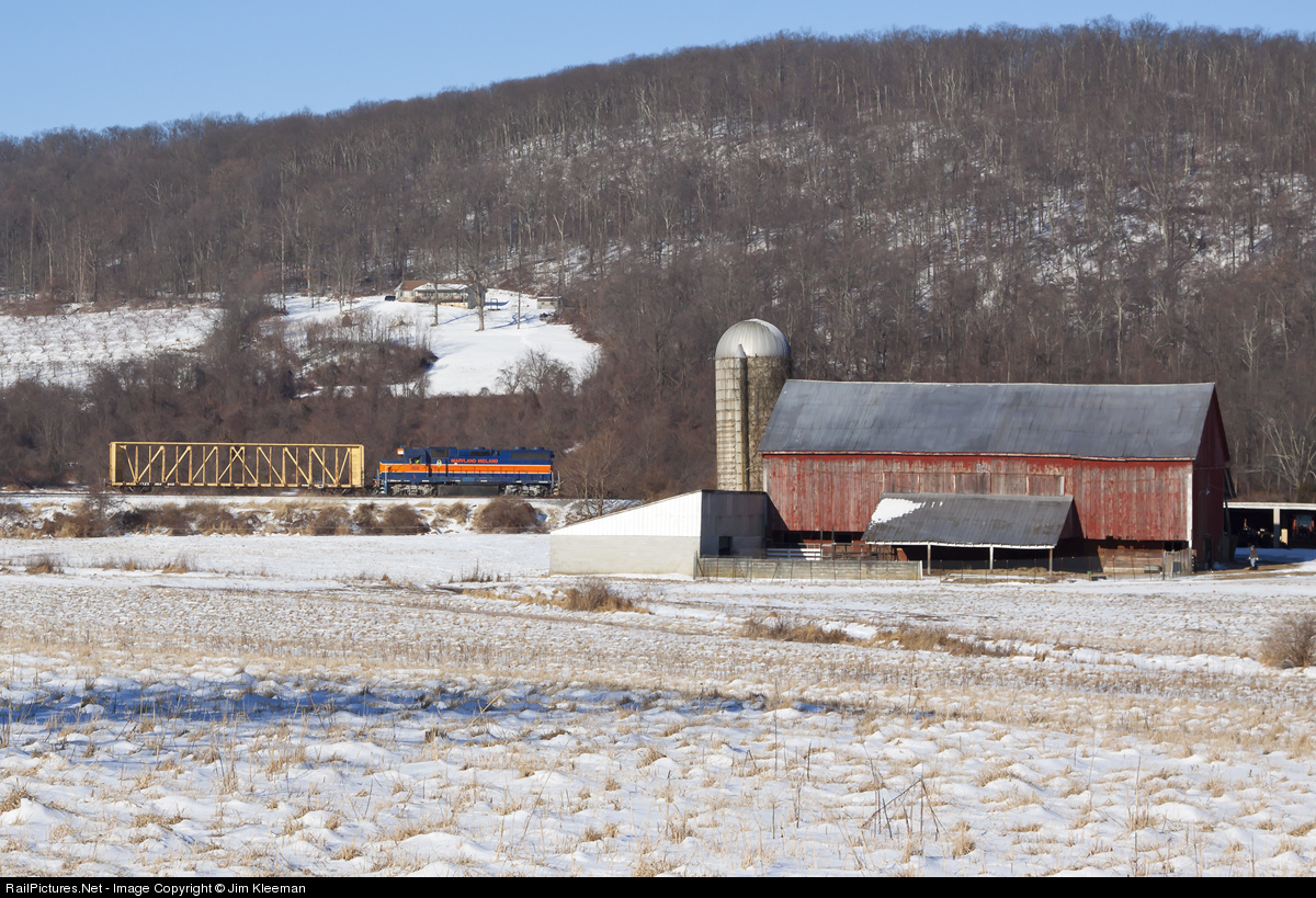 This is shortline railroading. A lone Maryland Midland GP38, long hood forward, hauls one car up the Catoctin grade south of Sabillasville, MD. At Highfield it will drop the center beam flat at the CSX interchange, pick up thirteen cars, and head back down the hill to Union Bridge