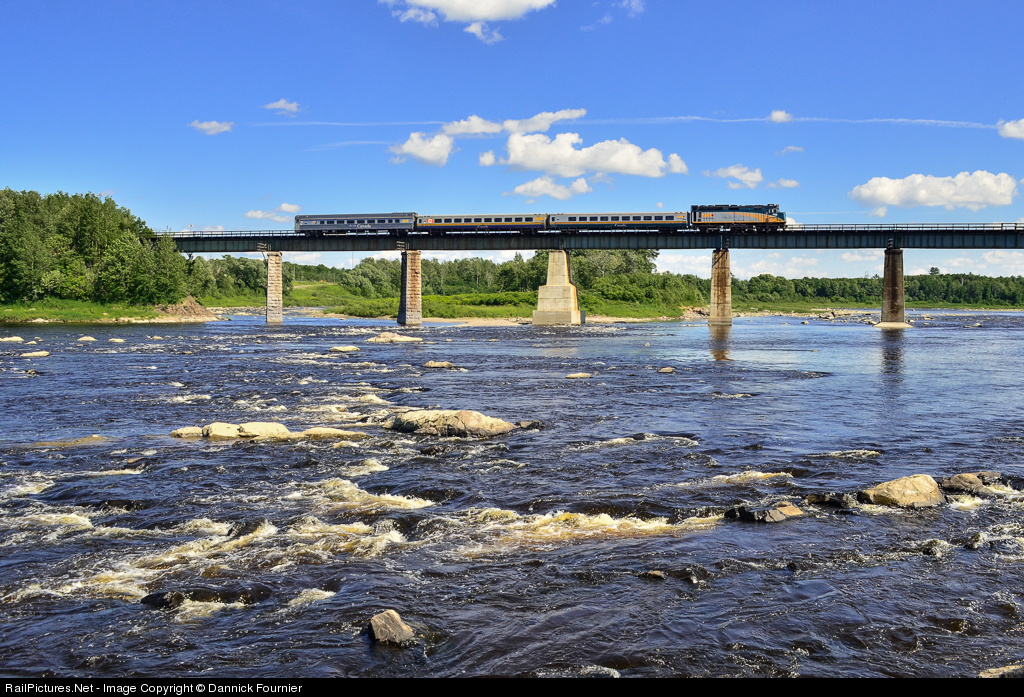 VIA 625 rumbles over the Chaudière river at Saint-Rédempteur.