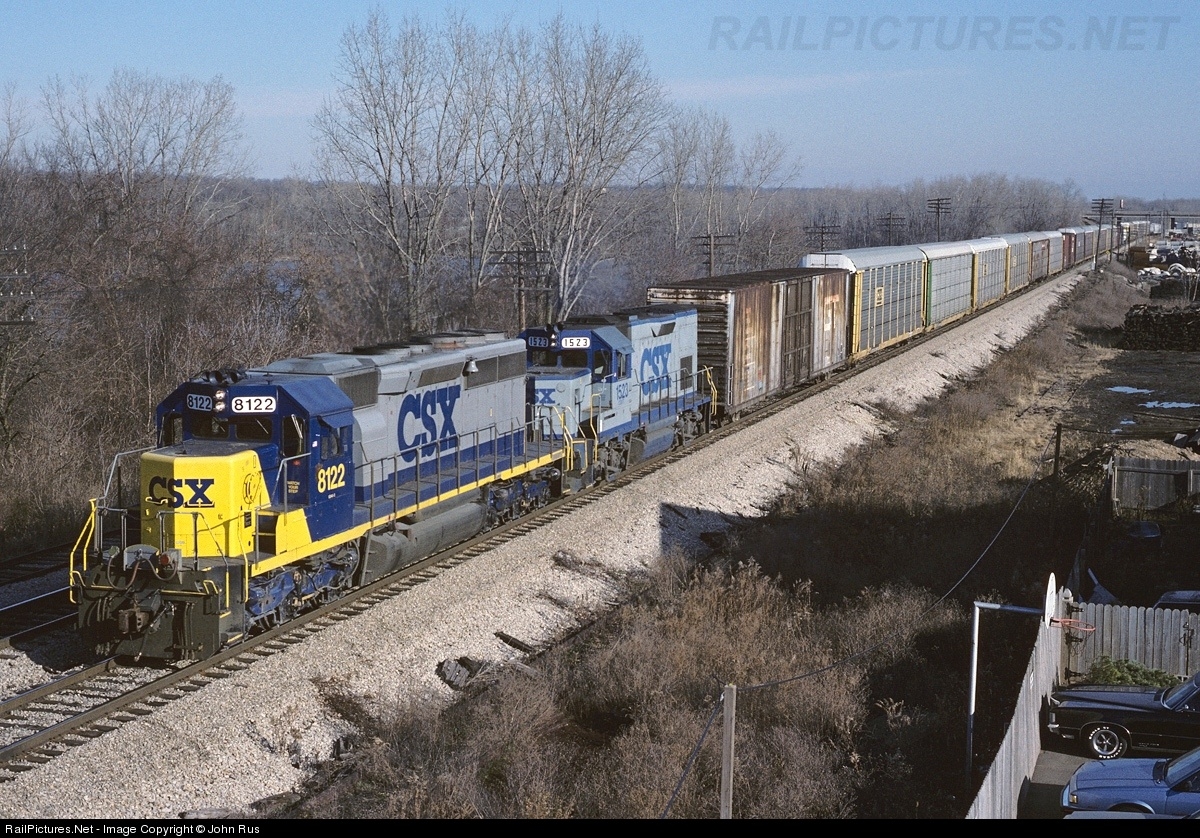 CSX train Q337 has just departed Wyoming, MI (Grand Rapids) and is under way to Chicago. Led by former L&N SD40-2 8122 and Chessie GP15T 1523, the Flint to Chicago train will travel the 136 miles to Porter, IN where it reach Conrail's main line and trackage rights to the B&OCT and Barr Yard.