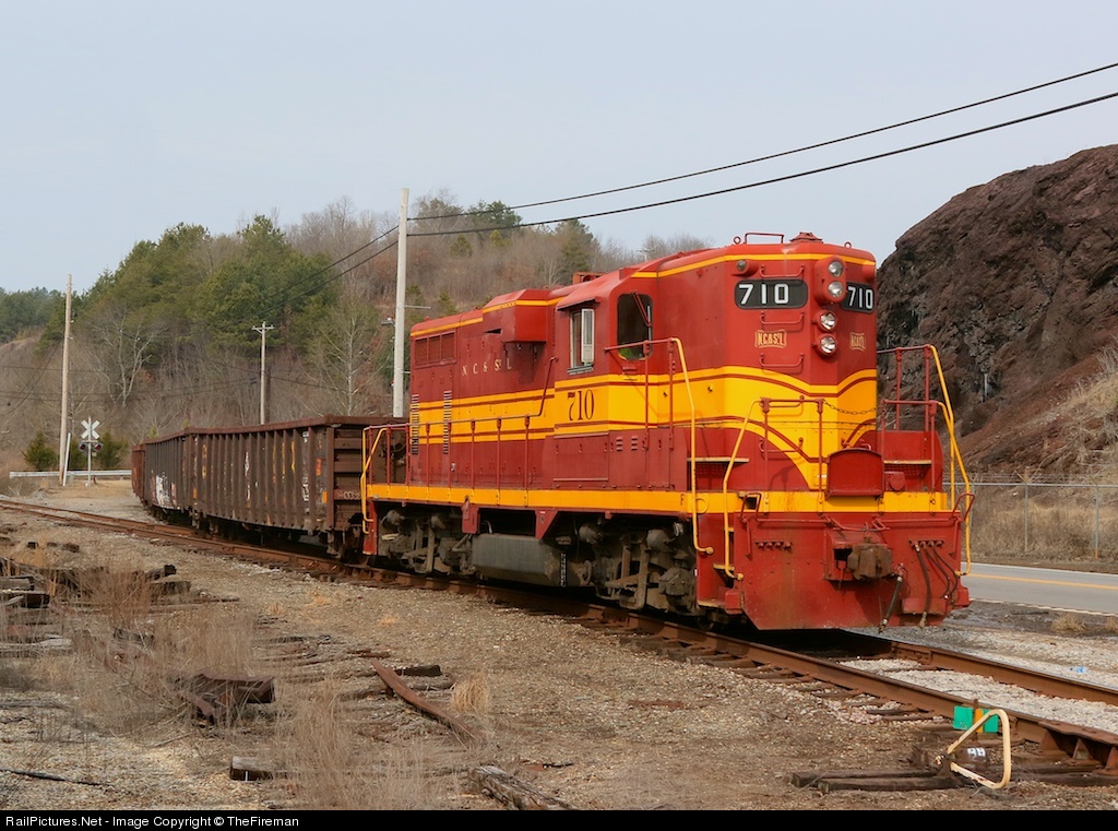 | Not many 64 year olds can pull this kind of weight in their advanced age. NC&StL 710 can though! After having work done on the electrical system a few weeks ago, she is up and running and doing her fair share to move iron ore out of Copperhill. here, she pulls a cut of loaded ore cars out of the loadout. |