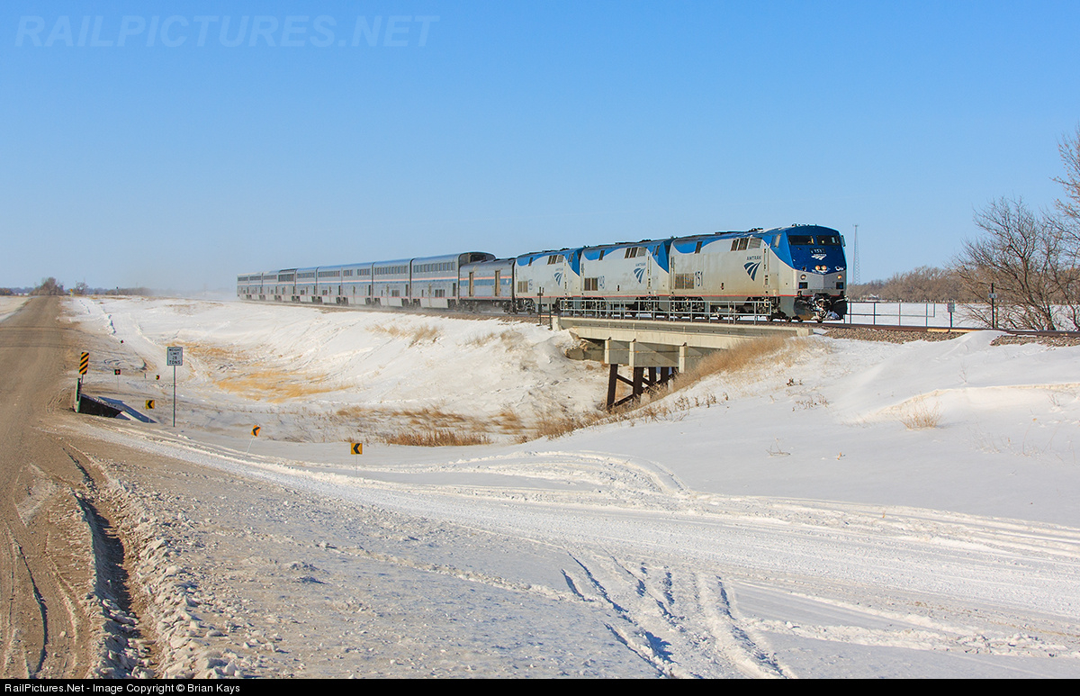 RailPictures.Net Photo: AMTK 151 Amtrak GE P42DC at Powell, North Dakota by Brian Kays