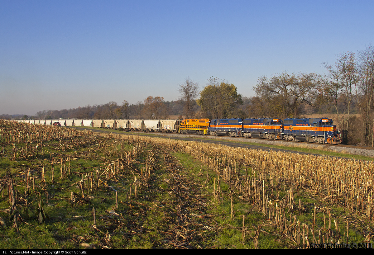 All 3 MMID engines with nose logos (306 with G&W corporate logos, 302 with the original MMID logo, and 2061 (former 301) in G&W paint, power this eastbound UBEG, along with MMID 304 sandwiched in between.