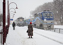 On the left a few people await AMT 88 (inbound from Candiac and bound for downtown Montreal), led by AMT 1344. At right is a deadhead movement being pushed west by AMT 1328. For more train photos, click here.