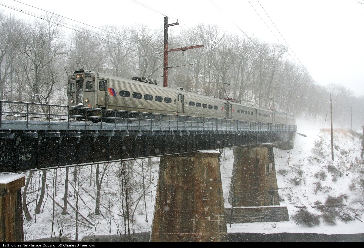 A aging set of Jersey Arrow IIIs makes another snowy run over the Millington High Bridge on the Gladstone Branch. This line is certainly one of the very last "interurbans" left in America.