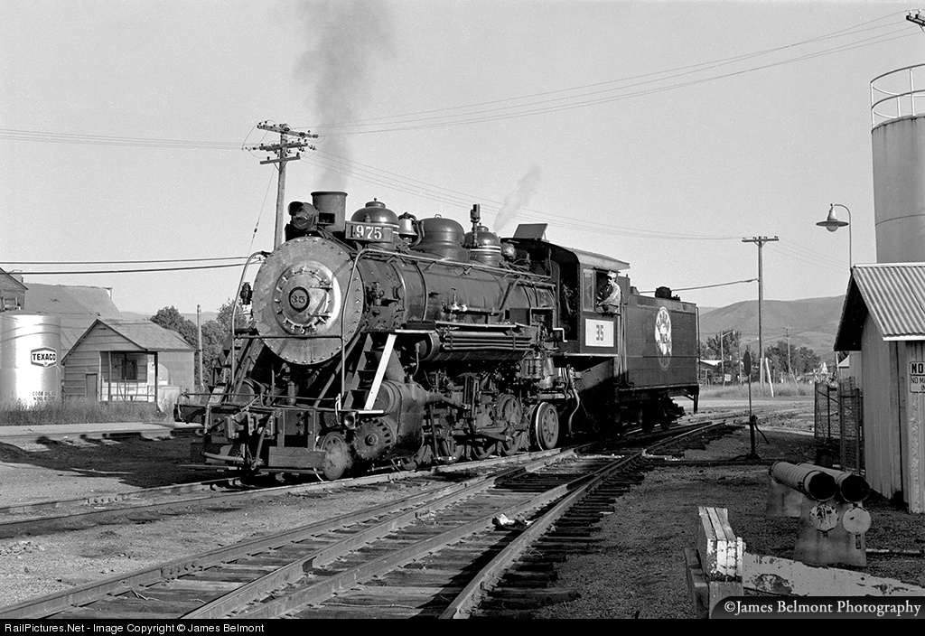 My father, a Saturday fireman for the Heber Creeper, helps navigate former Pacific Lumber Company 2-8-2 No. 35 (Baldwin, 1924) through the old D&RGW Heber City yard on Aug. 2, 1975.