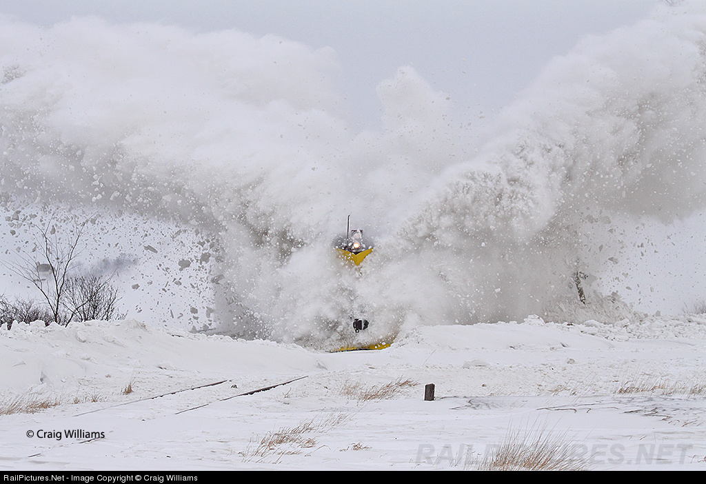 | Back in 2009, in southwestern Minnesota, the Wells day job works west on the Jackson Sub trying to open the line back up to the west end of the line at Jackson. Here 948 hammers along at 40 mph with a clean plow and hard snow a couple miles west of Granada. With those kind of conditions snow can be tossed along ways off the track, as seen with this mushroom cloud. Take cover! |