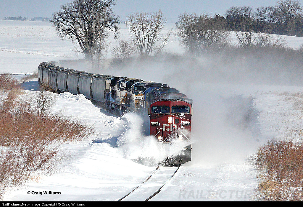 The Belt Clearing Yard in Chicago, IL, to Huron, SD, manifest train is just top the 1% grade out of Lawler as they past the Homeland Energy Solutions ethanol plant. Over night winter storm has people and the railroad slowly digging out this morning after blizzard conditions shutdown northern Iowa. The Mason City Sub would be busy as 4 westbounds made it across the sub in daylight.