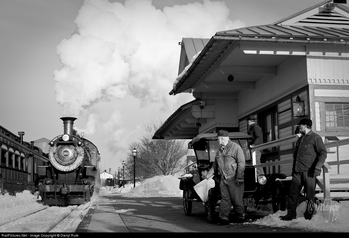 | As the station master and 2 other local men look on, N&W 382 arrives at the station. This was part of the Lerro Productions recreation of "The Virginia Creeper", which ran in Virginia. |