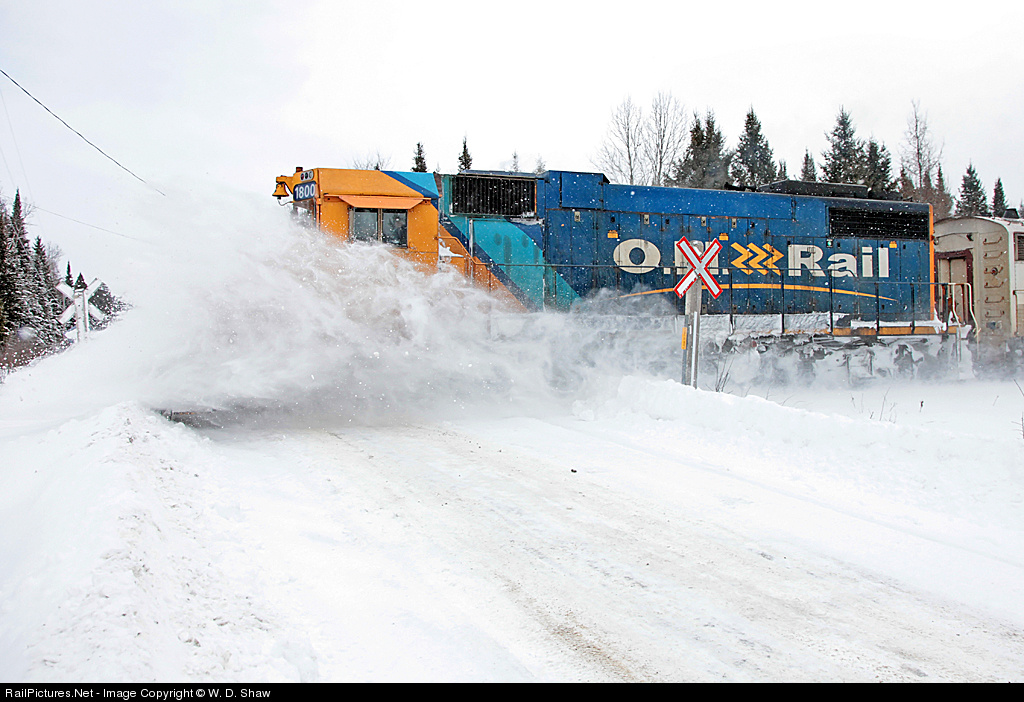 | The day after catching this train blasting through snow on its northbound journey from Toronto I catch it again heading south, encountering more snow at the South Lancelot Road crossing in Allensville. Instead of running straight through to Cochrane the previous day it got turned around at North Bay to run 698 down to Toronto as rail service had been interrupted and replaced by busses somewhere between North Bay and Cochrane, which is why I could catch it going the same direction on consecutive days. |