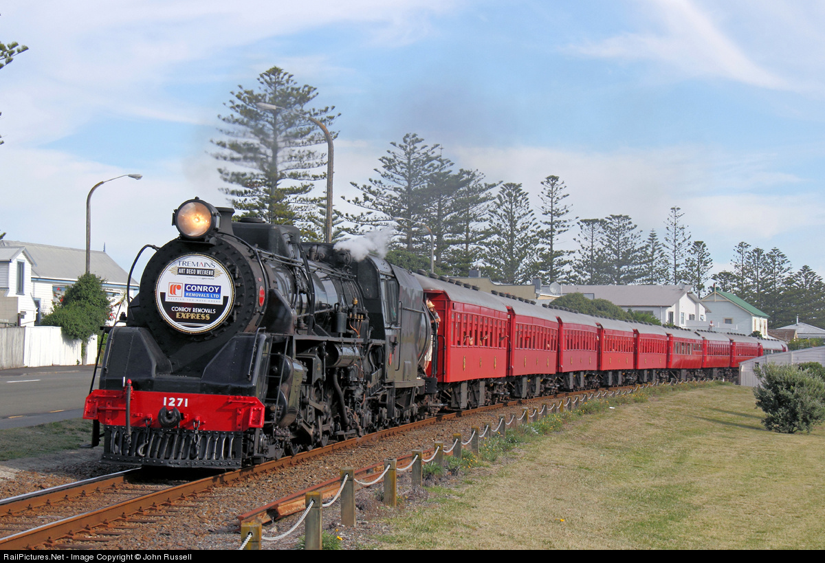 Several excursions between Napier and Hastings were hauled by Ja 1271 during the annual Art Deco weekend. Napier was rebuilt in Deco architecture after earthquake in 1931. Ja 1271 was built by Hillside in Dunedin in 1955-56, seen with excursion train approaching Napier from Hastings.