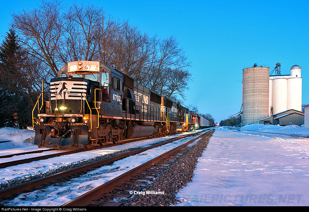 The daily Kirk Yard, IN, to Waterloo, IA, manifest train is actually alittle earlier than the normal on late schedule it has been on the past 4 months. The train almost made Waterloo in daylight, but had to pull into Jesup siding to meet a U706. Waterloo Yard has been fighting to stay current all week, but late trains, winter weather, and heavy traffic volumes has them today in the mode of "one train out, before next train in." So M337 will wait alittle bit for U706 here at Jesup, so there is room for them to come in.
