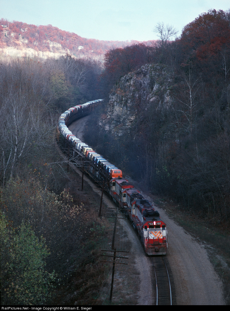Although all Frisco mainline freights were usually identified as Extra's according to the lead engine number, this particular train, to the operating personnel, was called #37. Only a few miles into their journey from the Chrysler plant in Fenton, MO, (near St. Louis) the Dodge vans are on their way to Texas, Oklahoma, and California.