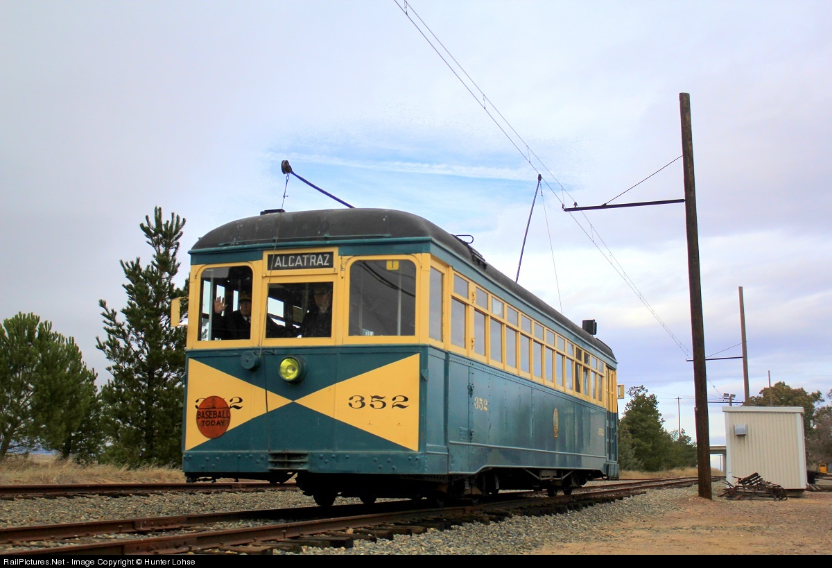 Key System 352 rolls down the tail track at the Western Railway Museum