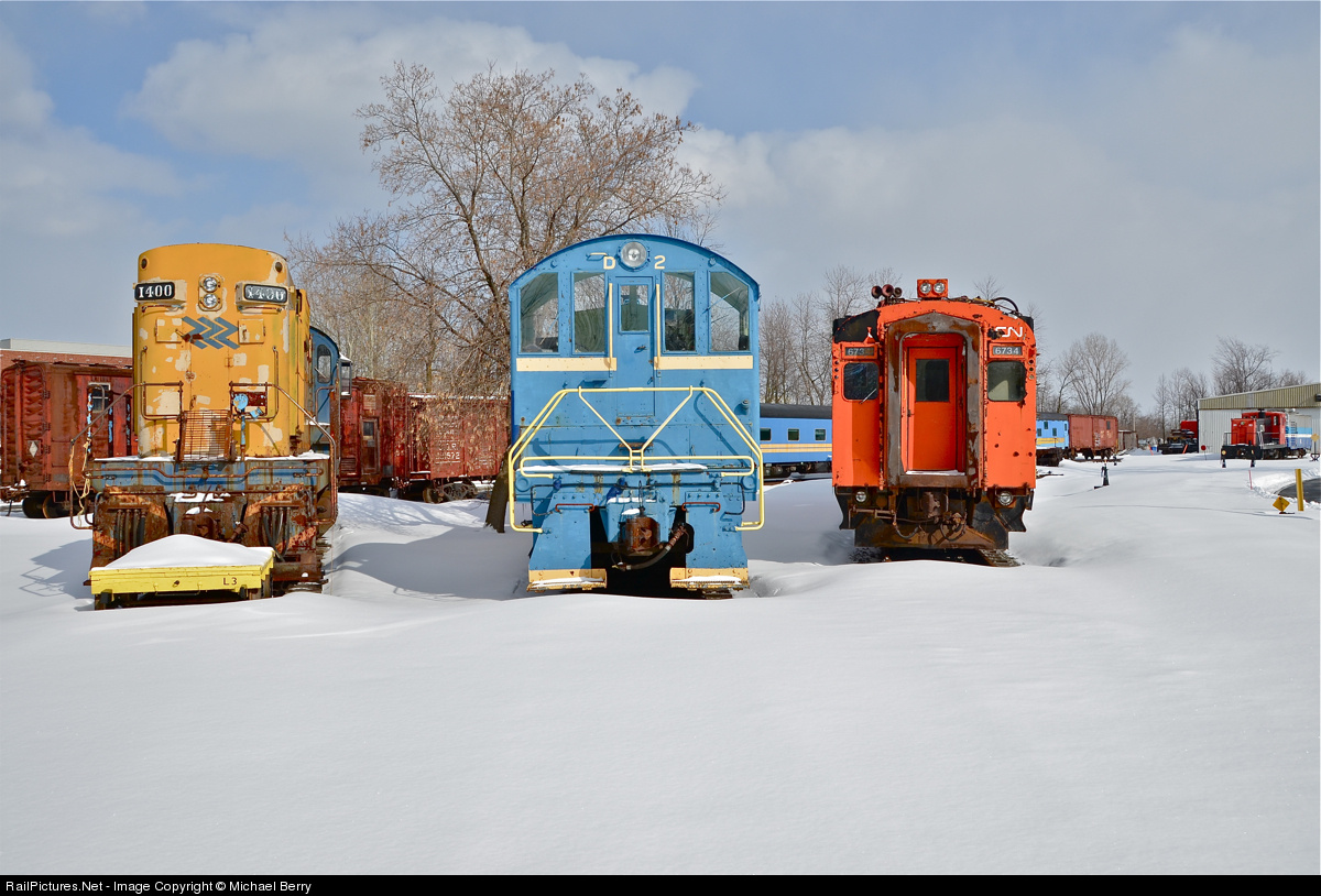 Train faces in the snow. At Exporail on a very sunny afternoon ONR 1400 (MLW RS10), POM 1002 (MLW S2) and CN 6734 (CC&F MU car) congregate at Exporail. At far right in the background is CN 30 (GE 70-tonner). For more train photos, click here.