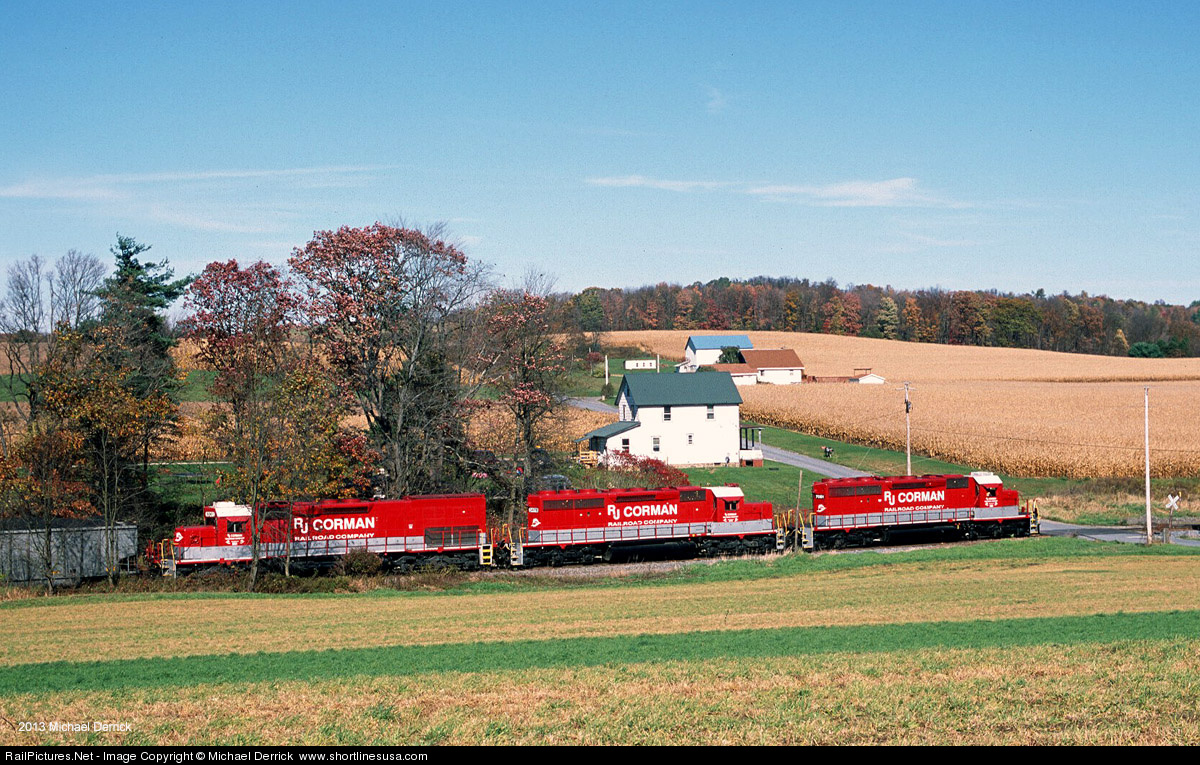 The second of two loaded trains from the Clymer, PA mine passes through a classic fall scene at Fleming Summit, just after passing through the horseshoe curve. Trains on this line go to the mine with a block of approximately 100 empties, then return as two trains of approximately 50 loads each. The Clymer line is operated sporadically, but offers some of the best scenery on the RJ Corman PA Lines operation.