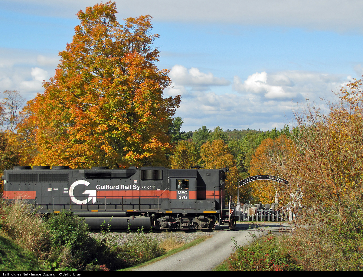 Keeping to its normal 10:00am Sunday departure time, Pan Am's BKWA leisurely headed North toward Brewer and Calais Junction during peak foliage in mid-October 2013. Rolling past quiet neighbors at Riverview Cemetery in North Bucksport, there's something special about seeing a veteran high-hood EMD in this day and age!
