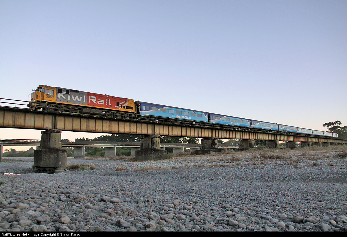 | DXB 5068 leads the daily Capital Connection across the Otaki Bridge in the very early morning on its way to Wellington. The sun is still rising behind the hills behind me but would soon be up for another nice hot sunny day. |