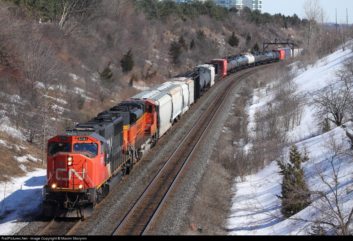 As the sunny +13 degrees March weather comes, I am able to head down to Hilda for a few hours to watch some trains. In a short time, we get this train lined and we see it come around the bend as we take our photos. For those who dont notice, this train has some American friends on board. Trailing is a BNSF SD70M, coming from the United States on lease to Canadian National. This is somewhat rare and pleasant to see, but with the recent FPON rush here in southern Ontario on both CN & CP, this is a fairly common sight.