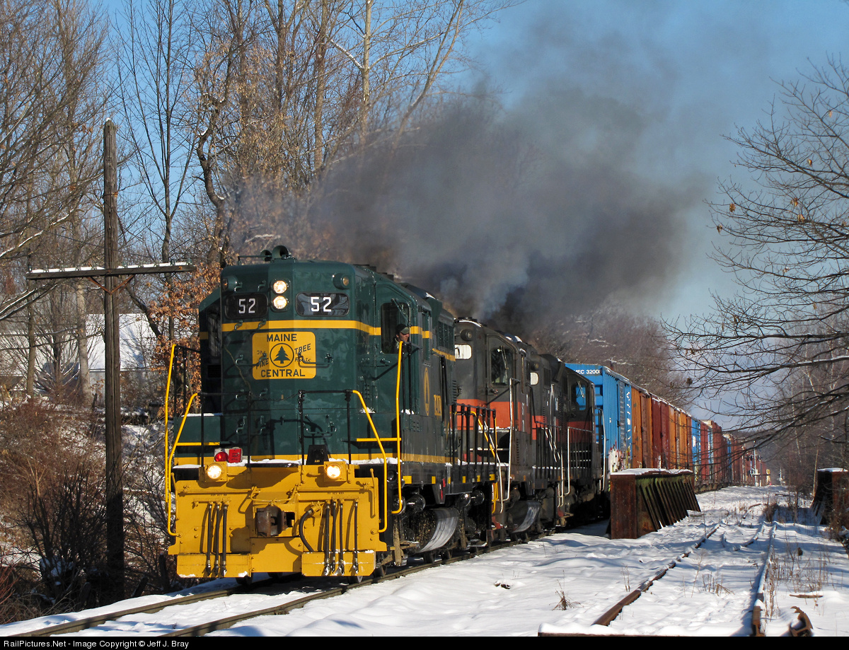 Until just a couple years prior, GP9s were not uncommon on local jobs in and around Waterville, Maine. Pan Am liked to keep them close to the "home" yard, and most had been sidelined or stored by the time the Holiday Season came around in late 2011. That year, however, PAR was feeling a bit festive as they put a group of GP9s on the SAPPI jobs with repainted #52 facing south for favorable light. Missing my chance the day before Christmas, I would risk the drive again on December 26th. With a successful pursuit already in hand, SAPPI-3 was led alongside Ricker Street in southern Fairfield as its engineer adds his dose of sentiment to the air.