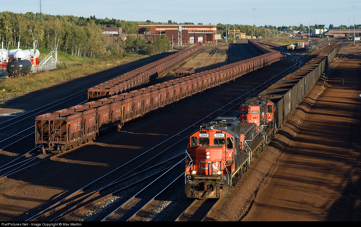 | Back when the CN first converted Proctor Yard to handle large amounts of manifest traffic as well as taconite, a nice pair of GP9RMs along with a slug were used for a little over a year. The rear unit, CN #7211 was sold/scrapped in 2013. |