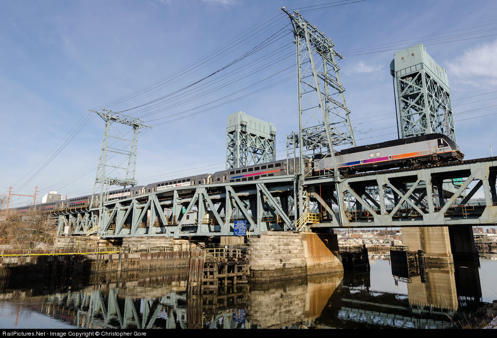 NJ Transit 4515 crossing the former Delaware Lackawanna & Western Railroad bridge spanning the Passaic River.