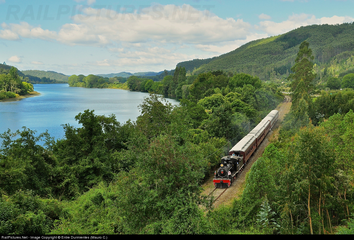 | In Southern Chile, nothing and no one stayed oblivious to return the touristic and heritage steam train "The Valdiviano" after almost 2 years of suspension. A westbound passenger train with North British steam locomotive No. 620 (1913), bordering the Calle-Calle river between Antilhue town in Los Lagos, and Valdivia city (Pishuinco - Huellelhue railway stretch) |
